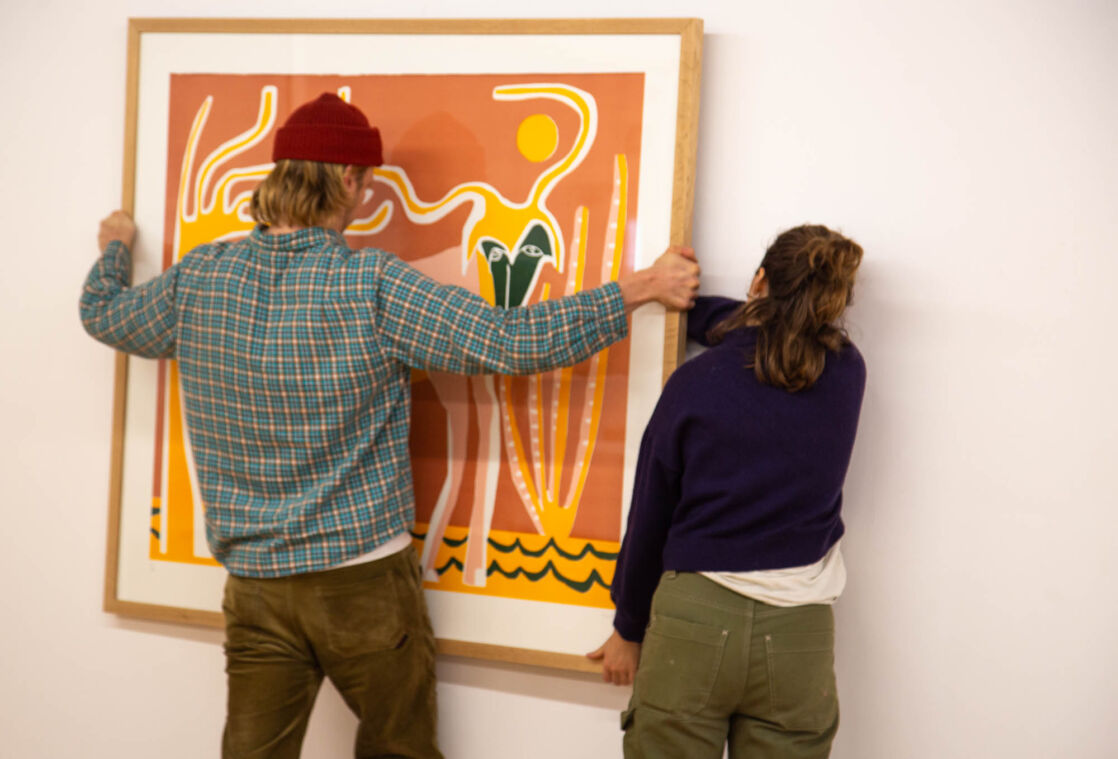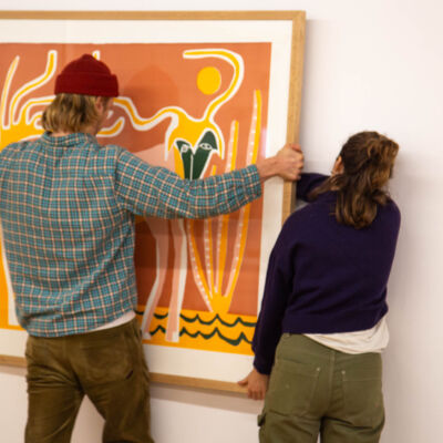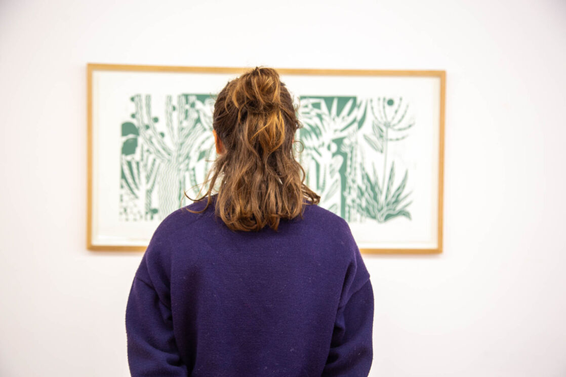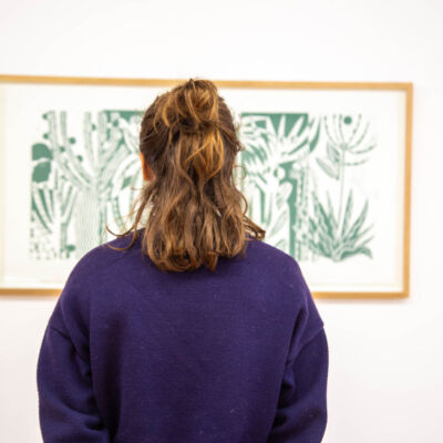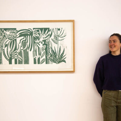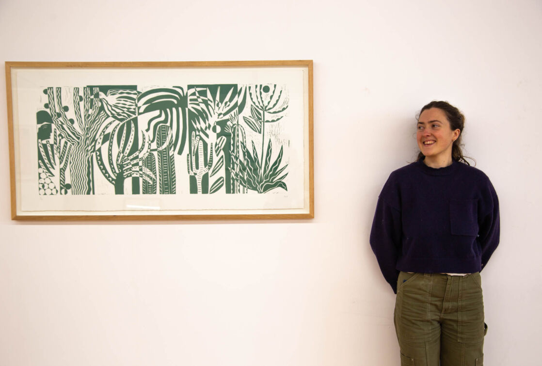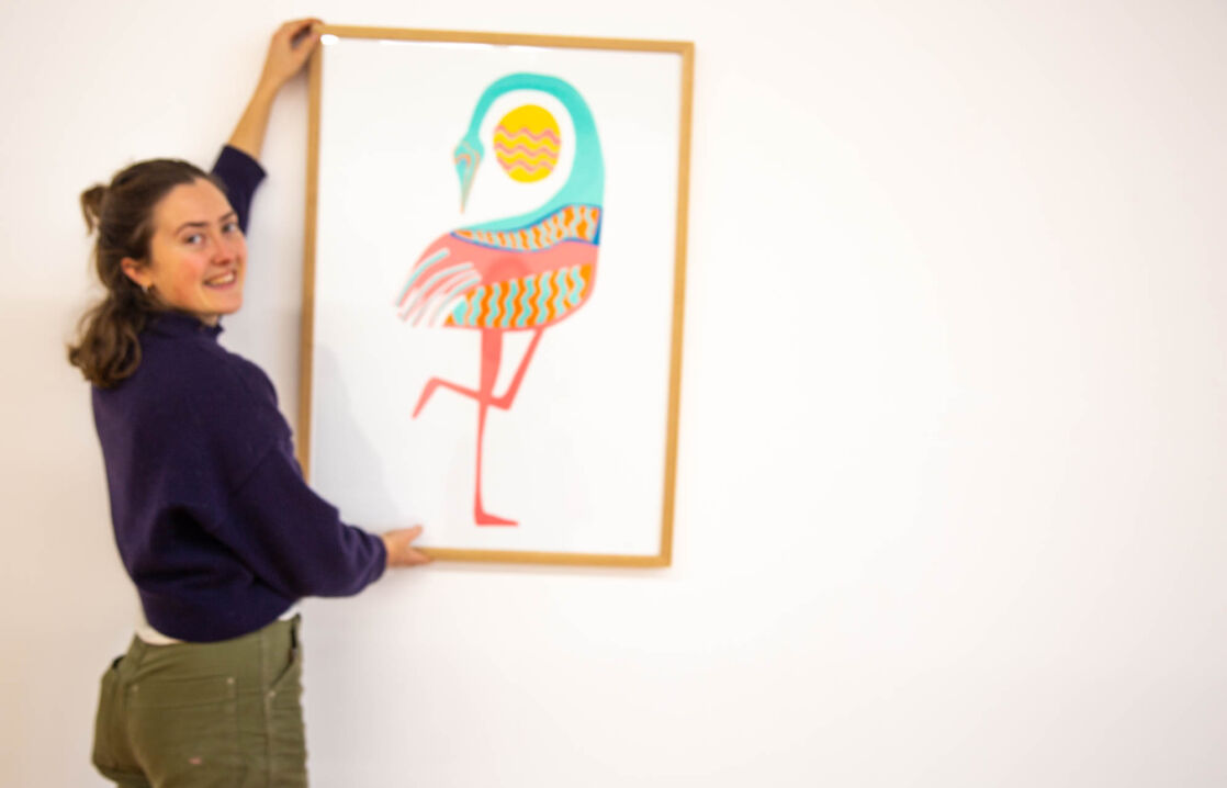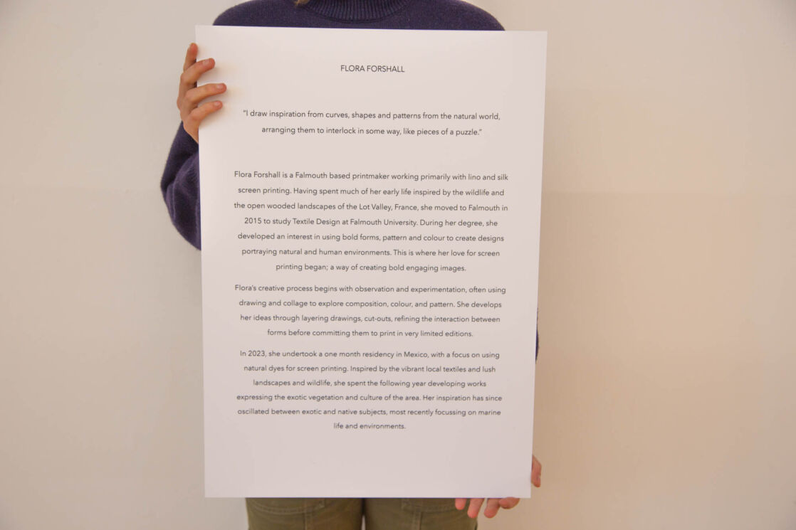 A graduate of Falmouth University, Flora grew up in a deeply creative environment and was surrounded by art materials from an early age. Her practice encompasses drawing, painting, collage and printmaking, with a particular emphasis on screen printing. Reflecting on her beginnings, she recalls: