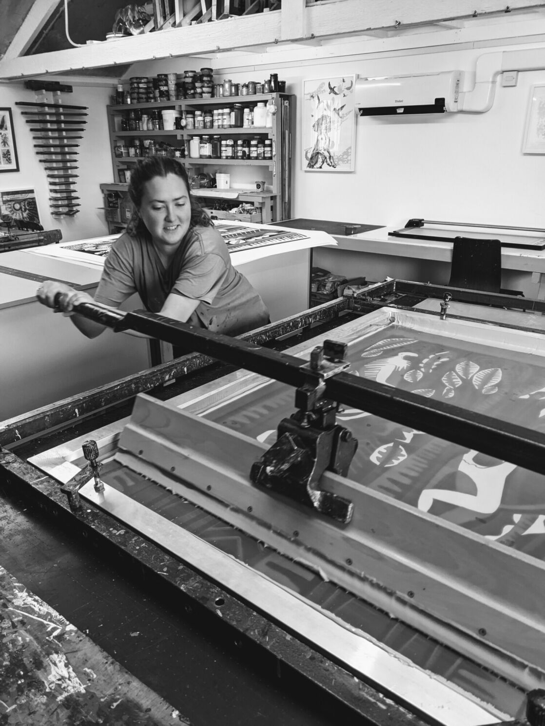 “We were always around inks, pens and paints. I started screen printing at university, producing large repeat patterns on metre-long fabrics, working collaboratively with large squeegees to flood the cloth with ink.”